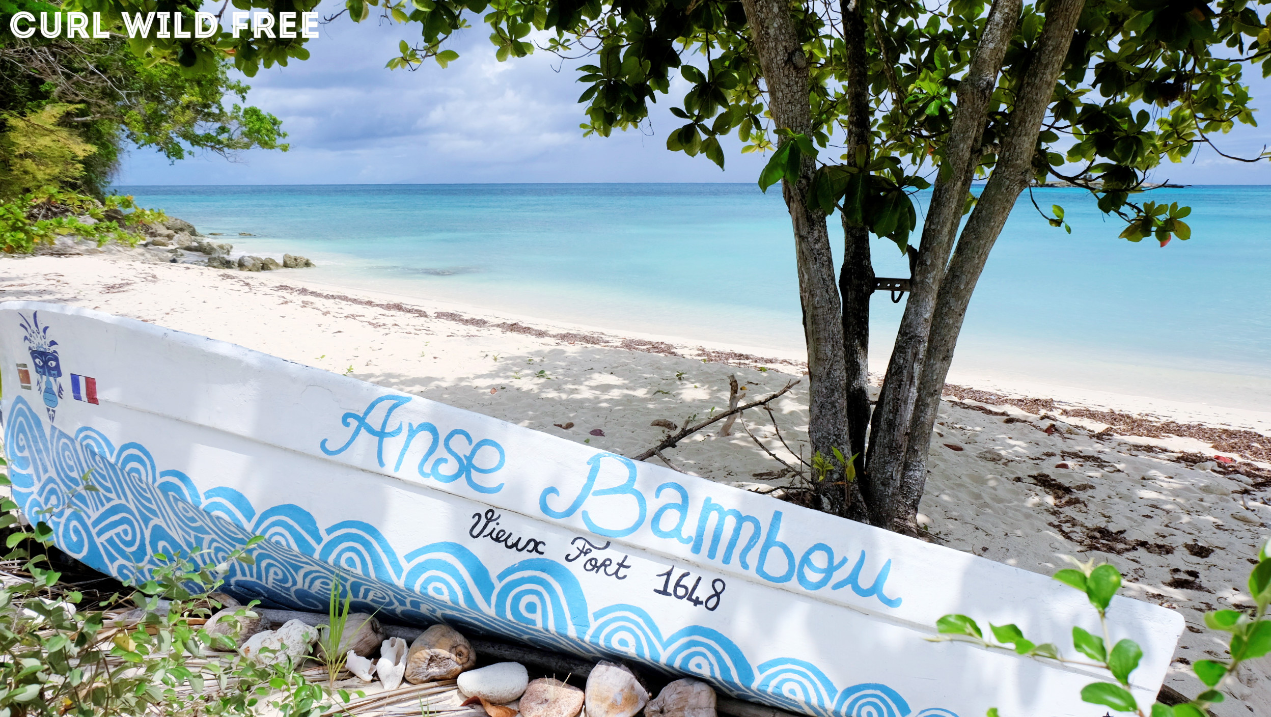 Ma big surprise de Marie Galante ! On roulait tranquillement, et là, BOUM ! Cette plage miraculeuse en bord de route, totalement vide et pourtant si magnifique ! Avec ce petit canot à l’entrée, trop craquant… J’adore ! Nous sommes revenus poser nos serviettes l’après midi et il n’y avait toujours personne à l’horizon (surement parce qu’il n’y a pas de parking pour cette plage…)
