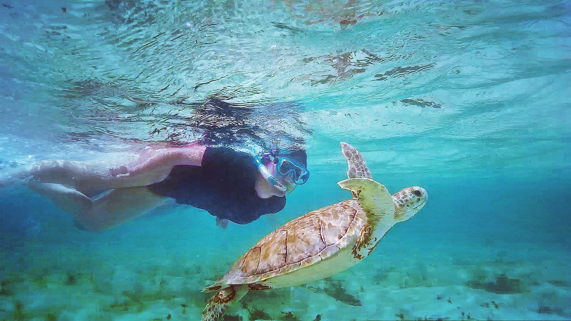 L’eau est tout simplement incroyablement claire, avec des bébés requins au bord du rivage et les tortues qui viennent brouter les herbiers tranquillement à vos pieds, INCROYABLE !